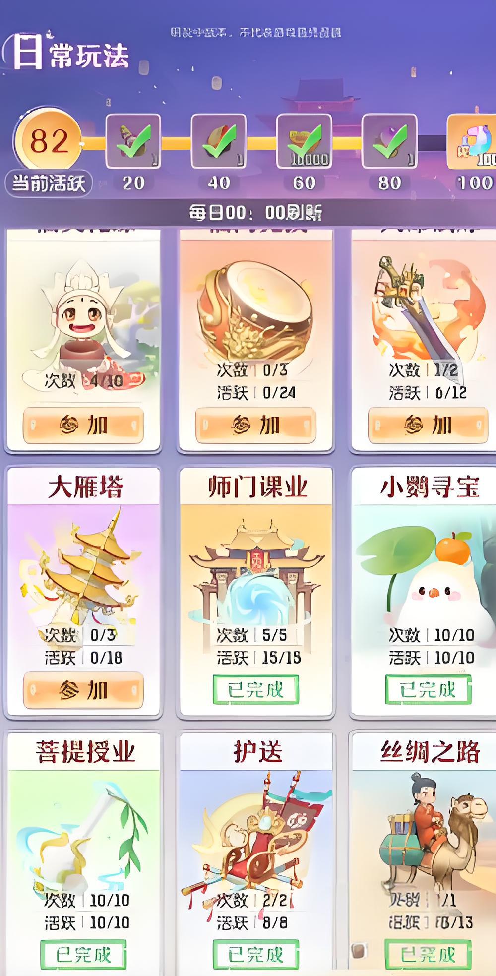 1、日常任务多样修炼玩法包含寻宝跑商爬塔抓鬼等活动,难度适中完成耗时短,每日仅需20分钟左右,适合碎片化时间游玩。