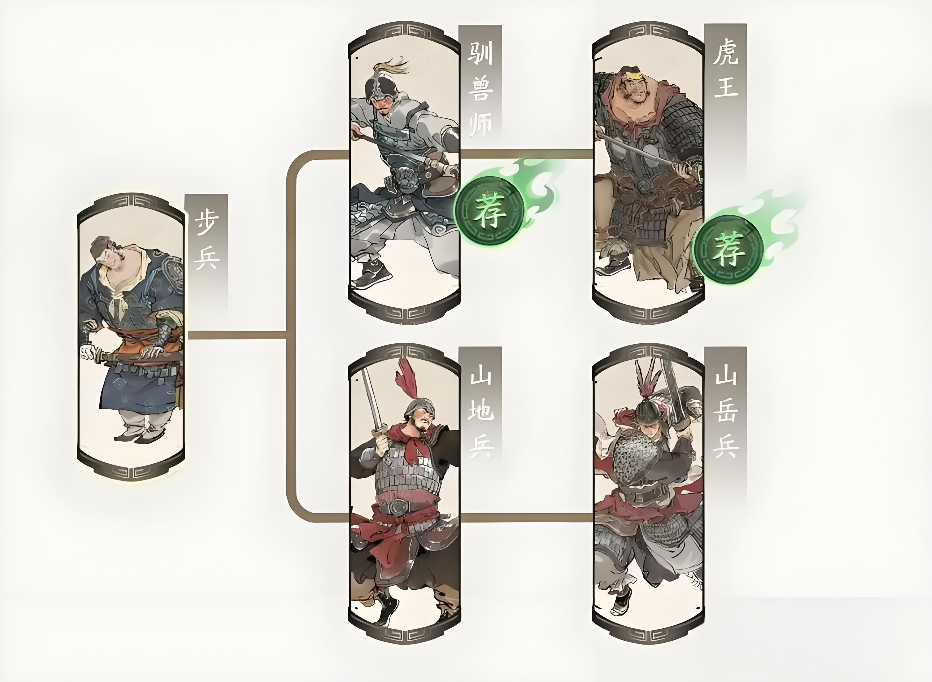 5、可选山地兵山岳兵等多种兵种,各类兵种对应物攻物防提升或移动力增加等加成,适合不同战斗场景发挥多样作战效果。