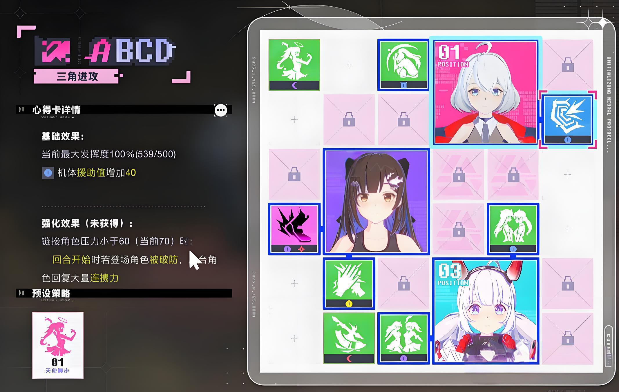 2、心得卡分两类特性,普通心得装备后直接生效,策略心得需在战斗中动态使用,两类均能提供数值属性加成。