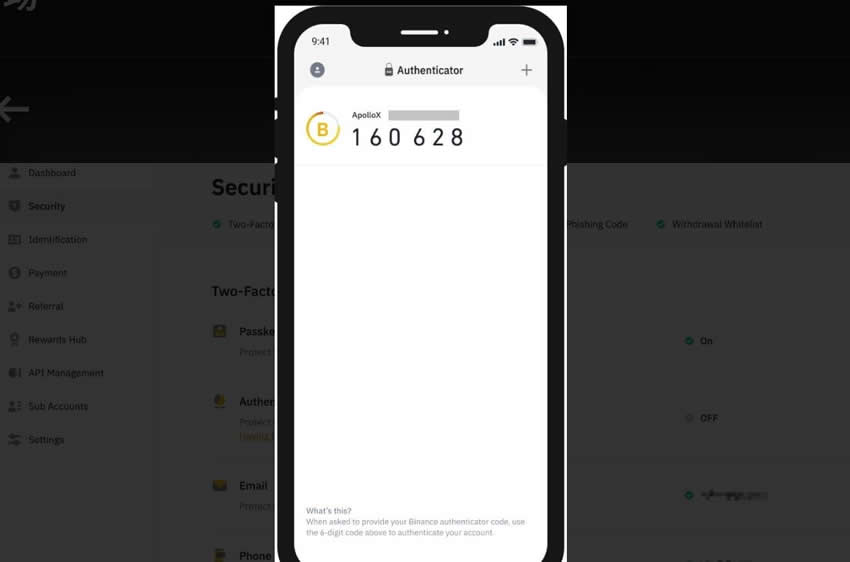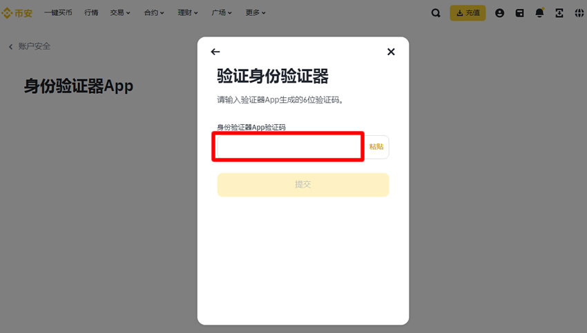 5. 将生成的6位验证码输入币安APP完成绑定。