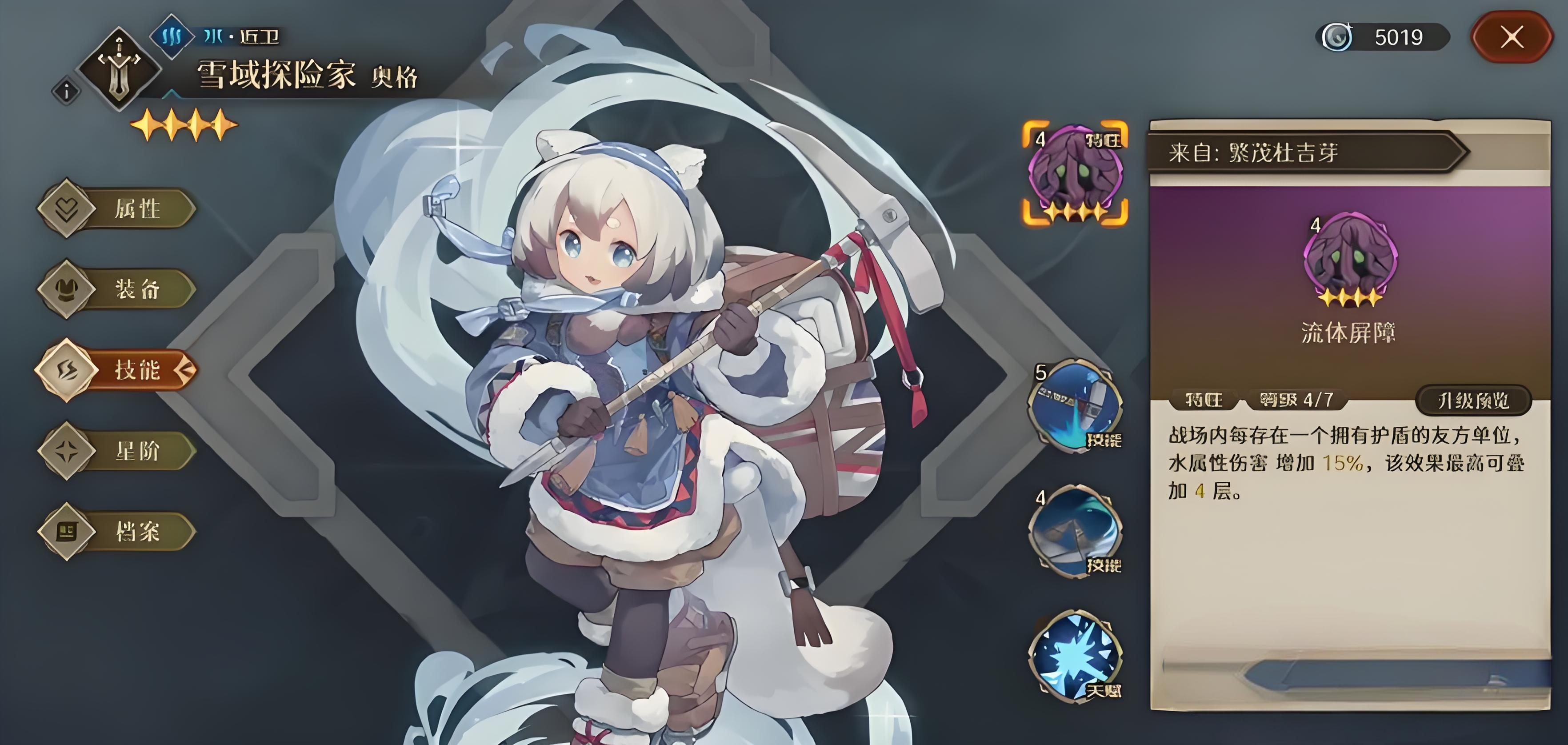 2、主角为多功能关键单位,可提供护盾与攻击加成,还能加速全队节奏并削弱敌方防御,其流体屏障可叠加水属性伤害。