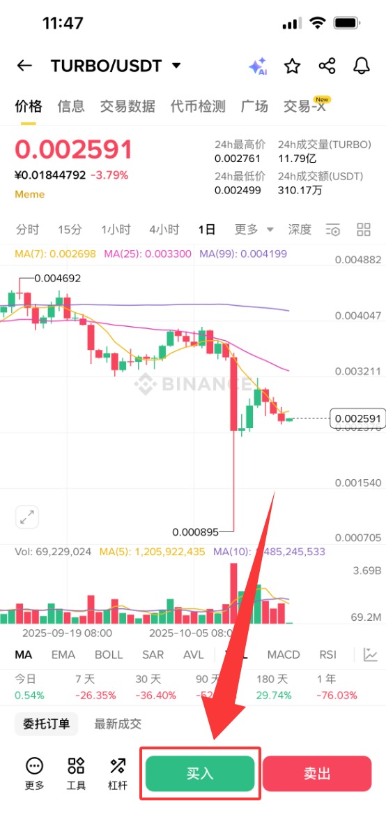 目前TURBO已在19家主流交易所上线,包括Binance、OKX等平台。以下为币安购买步骤演示: