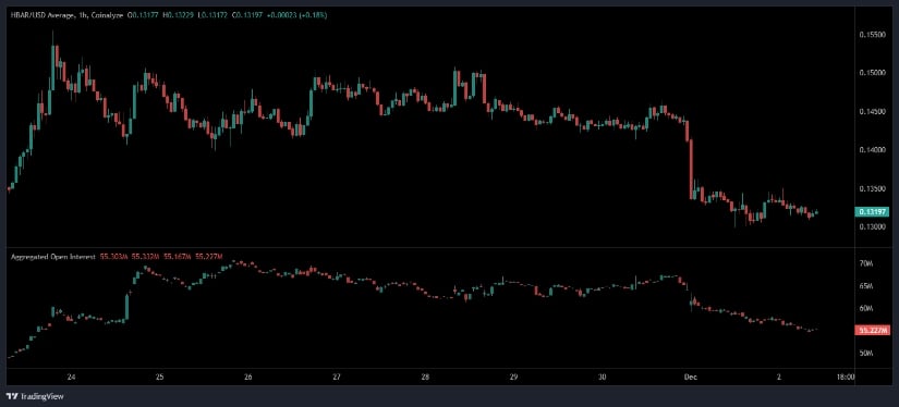 2025年HBAR价格:随着未平仓合约减少和势头降温,维持在0.13美元附近
