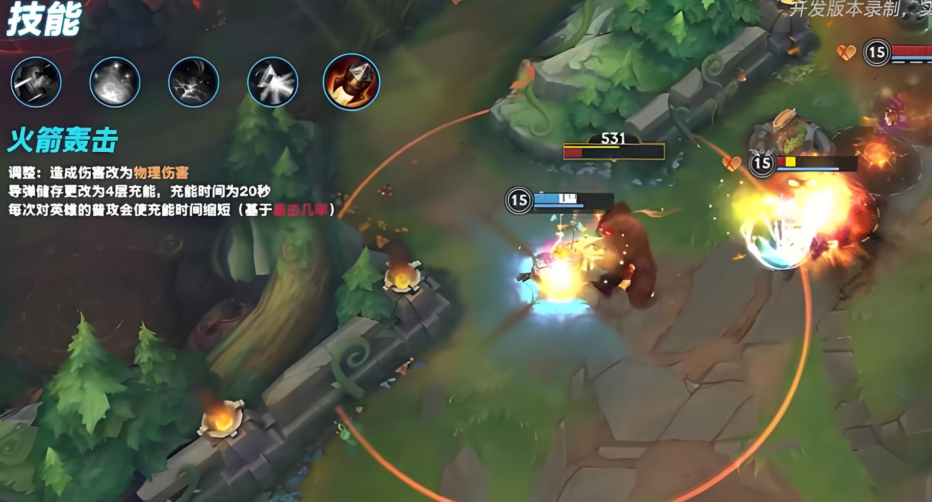 4、火箭轰击大招基础伤害未变,充能时间缩短,暴击率可提升导弹爆发,远程消耗和收割阶段的威慑力变得更为突出。