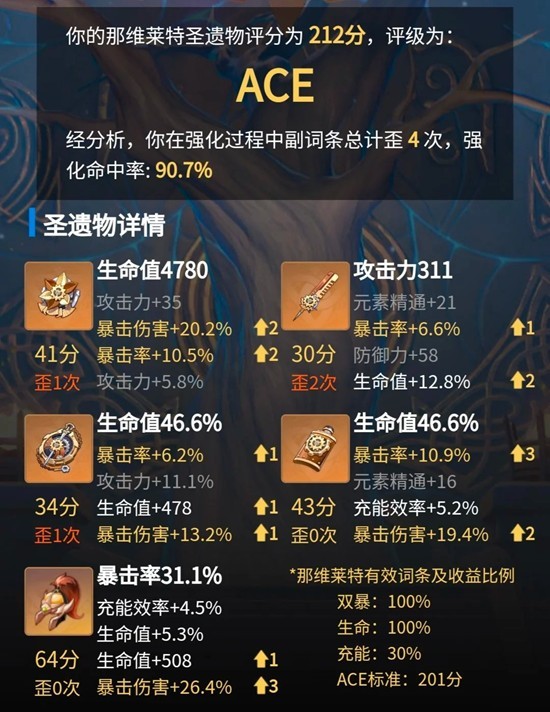 4、圣遗物优先逐影猎人四件套,主词条按生命攻击生命水伤爆伤排序,副词条优先爆伤其次暴击率再到生命与充能。