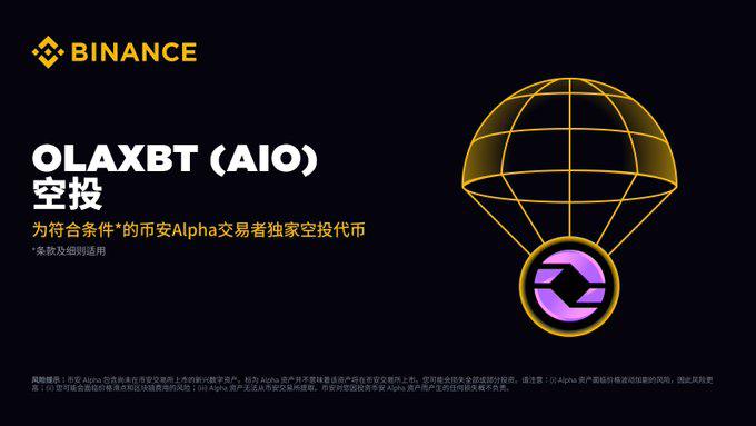 币安Alpha平台将于2025年8月2日首发OLAXBT交易,持有200积分的用户可申领750 AIO空投。申领需消耗15积分,24小时内确认有效。