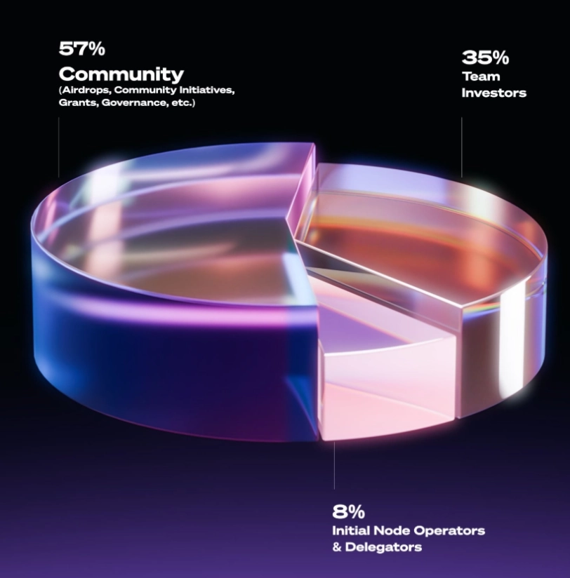 TOWNS代币总量100亿枚,分配比例为:社群生态57%、团队与投资者35%、节点激励8%。代币功能涵盖治理投票、空间访问权限及网络安全维护。