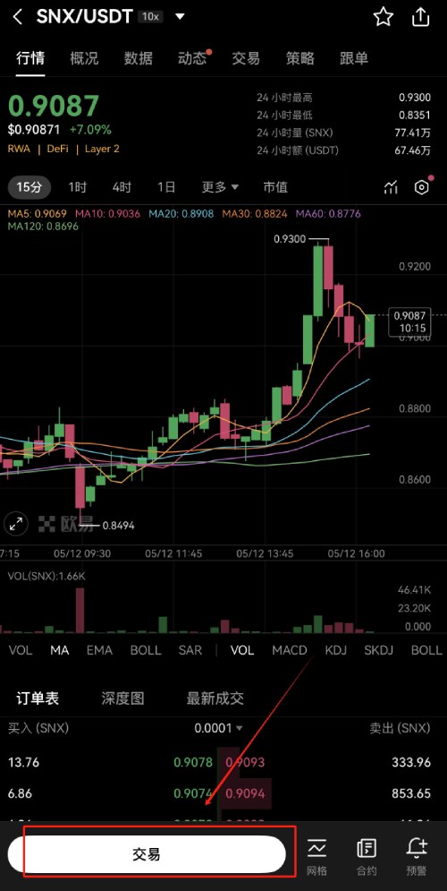 目前SNX已在OKX、火币、MEXC等主流交易平台上线,作为Synthetix网络的原生代币,其交易流程简单高效。以下以欧易平台为例展示具体操作步骤: