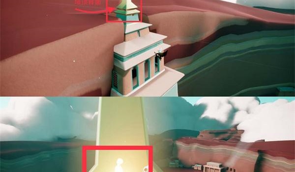 2、另一个在神庙的塔顶后面,只需绕到塔顶后面就能看到了。
