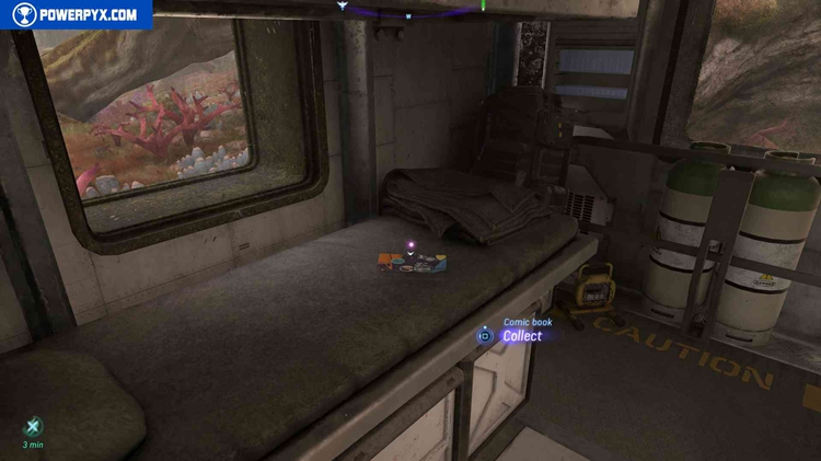 收集前 10 部寻宝漫画后,您将立即获得一个名为“寻找家园 - 第 11 部分”的支线任务。请务必从任务日志中跟踪它,它会在地图的右下角放置一个绿色的航点。去那里在山壁上找到一扇门。进去找到最后一个房间里的最后一本漫画。房间被另一扇门锁住,要打开它,请通过左侧的开口向墙板射箭(使用黑客工具时会突出显示)。