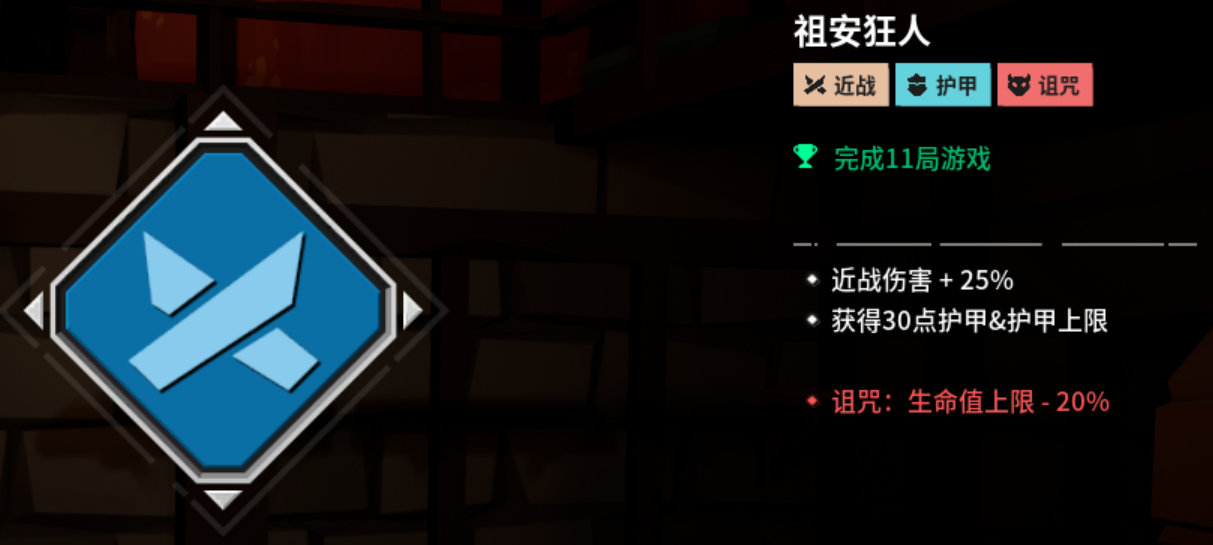 选择任意两到三个减少生命上限天赋(共四个),确保生命上限减少超过百分之百,建议诅咒护甲开局
