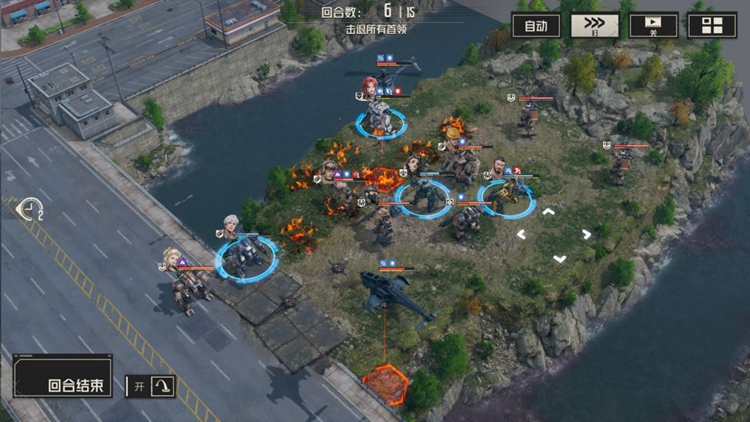 走位躲避地雷地形,然后继续集火攻击地雷boss,直升机不用管