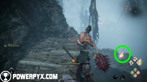 龙脉精华(横刀望白马):在关卡的后期,你会到达一个雾区。完成后,继续沿着主要路径找到昌贵。打败它,然后爬上昌贵后面的长梯,向右走。你可以找到过去的两个士兵。