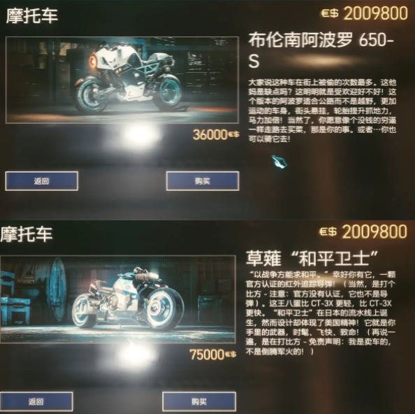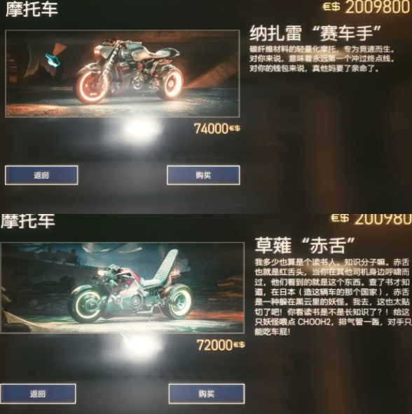 赛博朋克2077 2.1新增摩托车载具一览