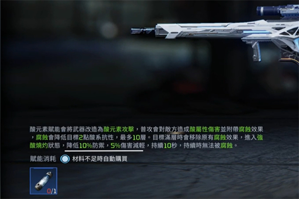 5、酸元素赋能:这种赋能带有酸的腐蚀效果,可以将机甲陷入熔甲状态。