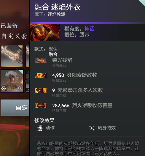 dota2荣光残焰是火猫灰烬之灵的动能宝石,该动能宝石可以改变大招残焰的火魂动作