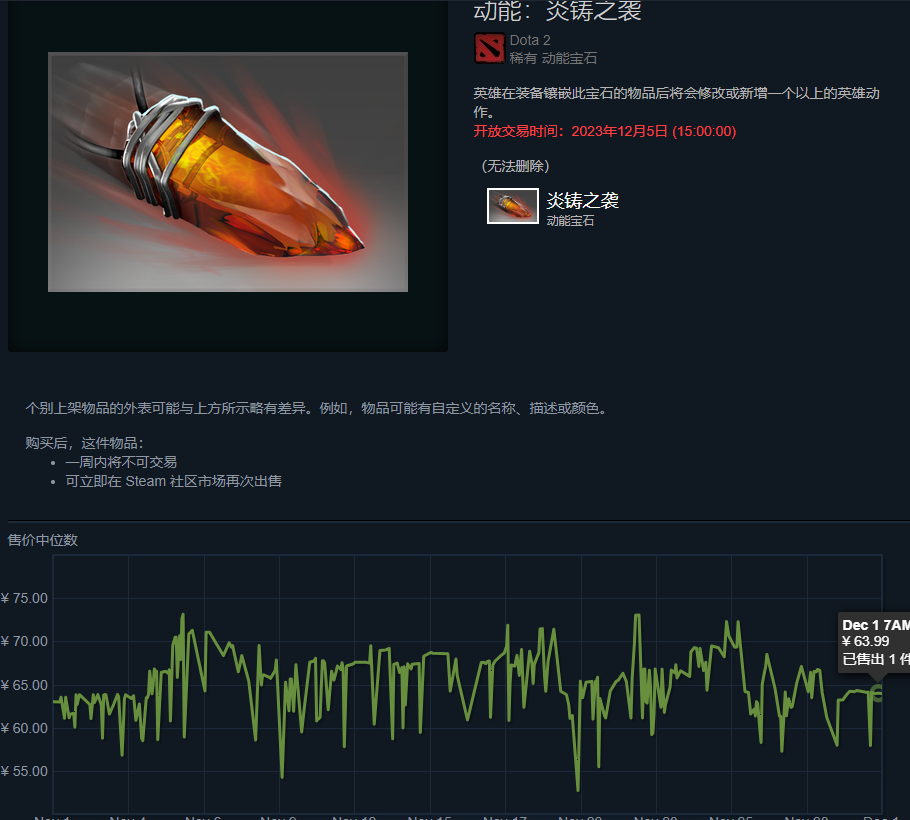 dota2炎铸之袭是主宰的动能宝石,默认会自动镶嵌在炎铸大太刀武器上面,不过一般市场贩卖的炎铸大太刀都会被抠出来,只有原装的才有这个宝石,玩家可以前往市场直接购买炎铸之袭动能宝石,效果改变持剑姿势并且完全替换攻击动作。