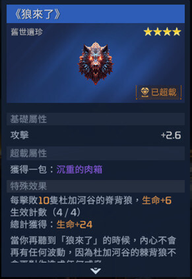 星球重启狼来了怎么获得?不少玩家可能还不太清楚游戏中的这个旧世遗珍如何获取到,下面带来具体的介绍,供各位玩家们参考。