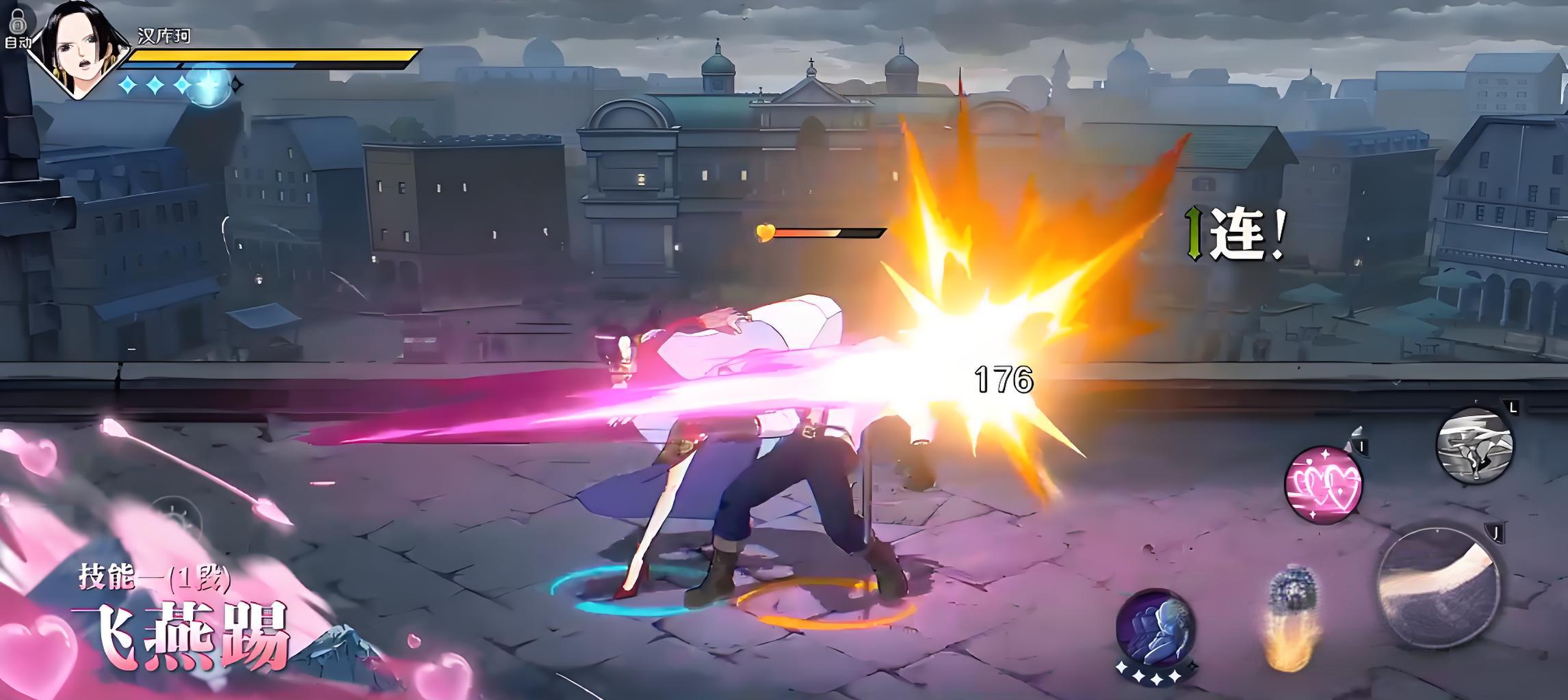 2、技能1飞燕踢分点按长按,点按有三段攻击且下劈为抓取,长按可强化技能并附加部分石化还能衔接普攻。