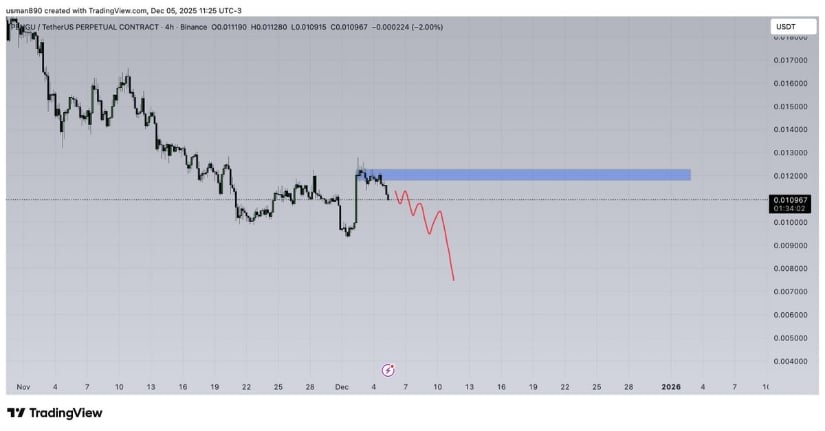 Richie指出,PENGU下一关键挑战位于0.0125-0.0135美元区间。若带量突破该区域,将标志胖企鹅币自11月下跌以来首次实质性动能转换。虽然尚未确认趋势反转,但支撑位反应配合更高低点形态,暗示市场情绪正缓慢转向谨慎乐观。