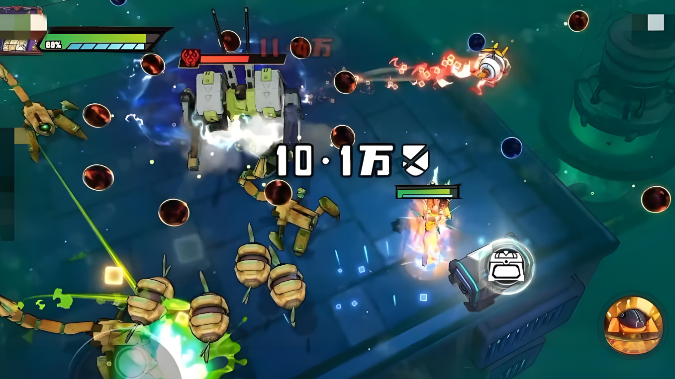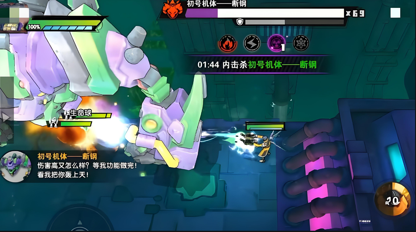 2、推关卡可将一技能专精换为站桩炮台,用以稳住战线吸引敌人火力,混乱场景换回跟踪机器人,可挡子弹或协助团队刷元素辅助作战。
