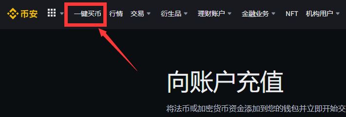 2.登录后点击顶部导航栏中的【一键买币】快捷入口。