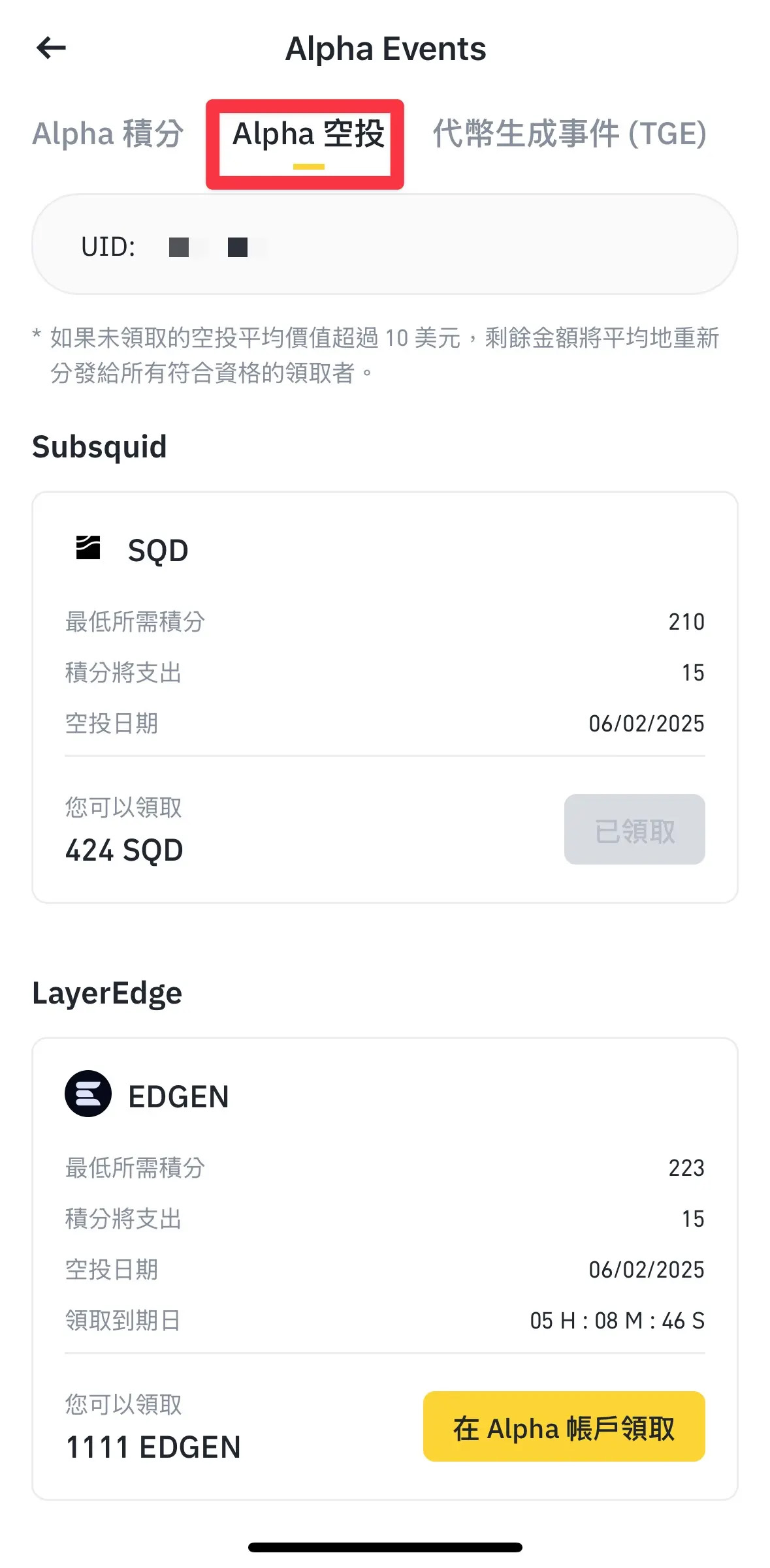 5. 使用积分领取代币(每次消耗15积分)