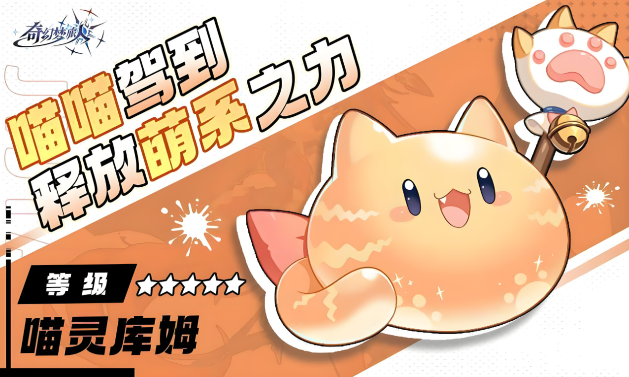 2、喵灵库姆为五星萌系宠物,外形呆萌但实用性强,能提供大量属性加成,还可进行近战重击且养成难度偏低。