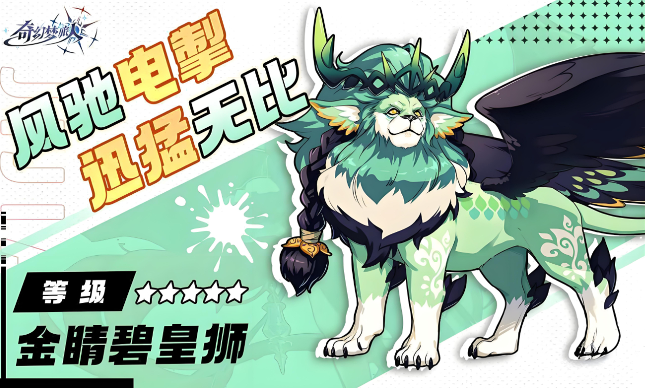 3、金睛碧皇狮属于神宠级宠物,自带风属性伤害加成,气质较为霸气,召唤后能发挥出顶级水准的输出能力。