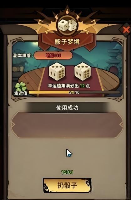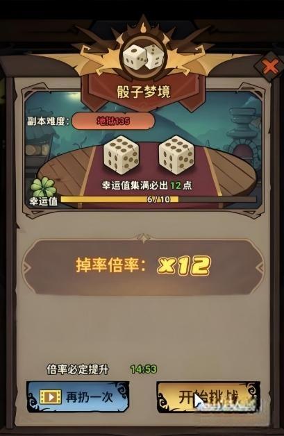 2、进入副本后需先进行掷骰操作,点数范围覆盖一至十二点,点数直接对应全局掉落倍率,十二点为最高倍率且获取难度较大。