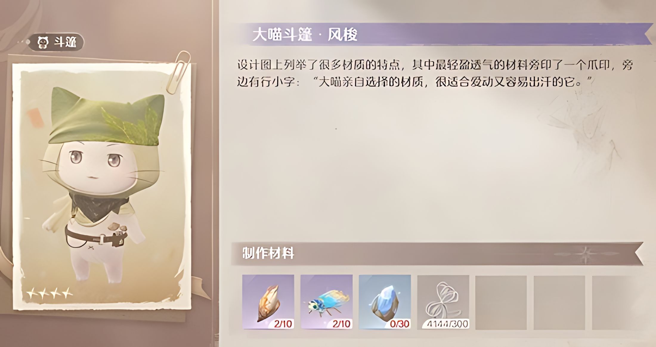 2、风梭要完成黏黏爪勾中浮絮巨鸥的成就,收集陶罐茧青青釉蝉大地晶珀帅气丝线等指定材料,全部备齐后便可获取这款特色斗篷。
