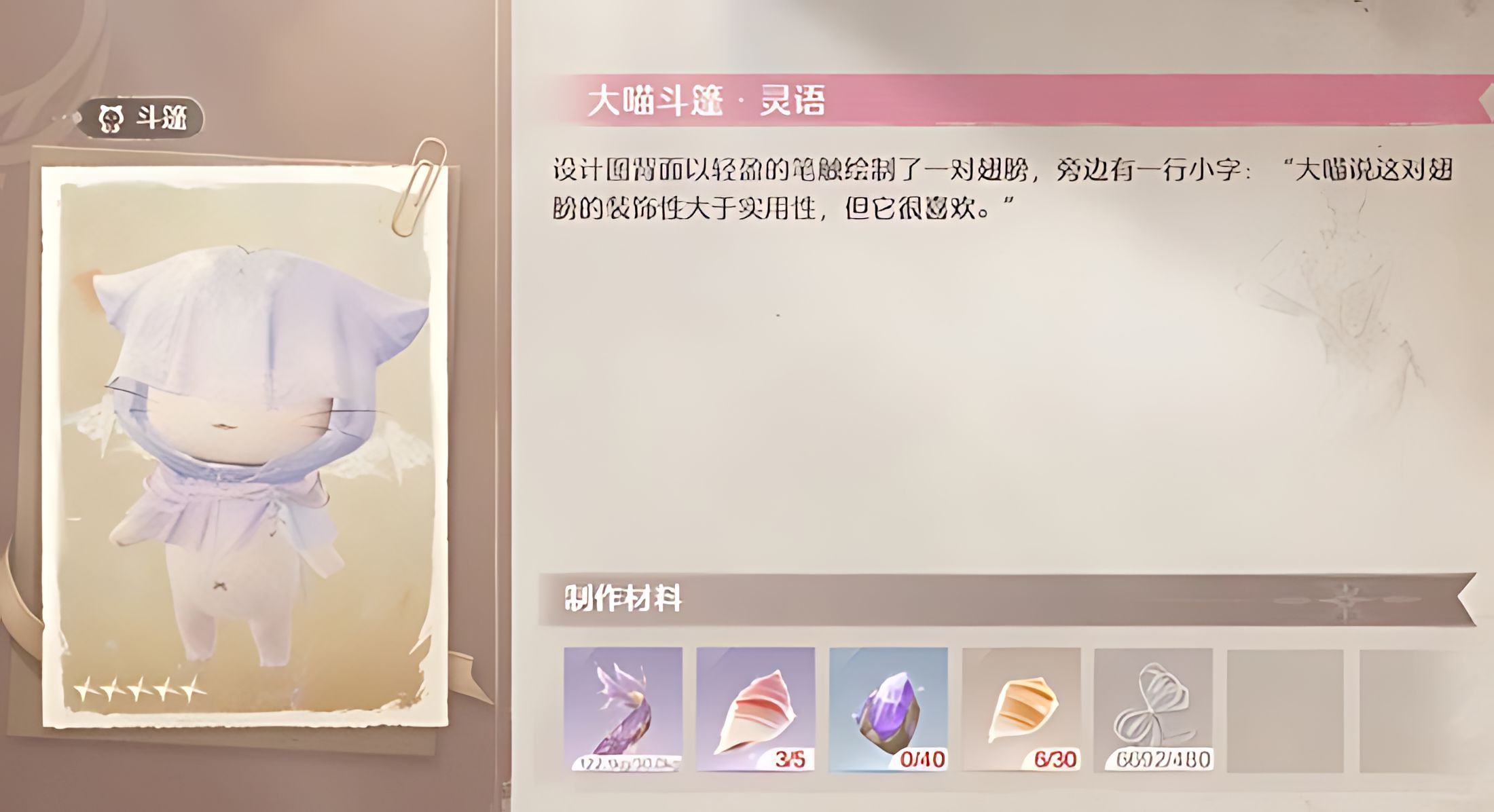 4、灵语需焕新全套谒灵奇迹套装解锁成就,集齐彩翎鱼闪亮蜗壳晶小小蜗壳晶大地晶珀性感丝线,满足条件后就能获得该款斗篷。