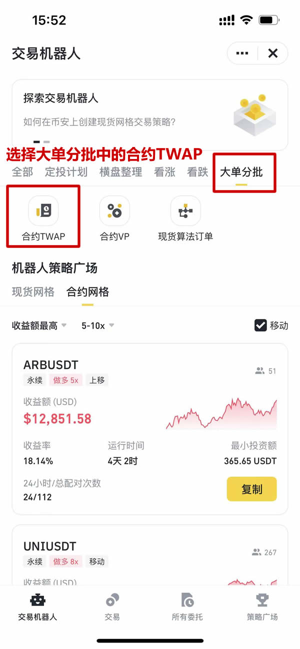 2. 选择「大单分批」中的「合约TWAP」