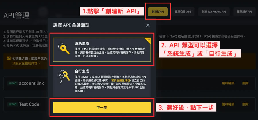 3. 创建系统生成型API密钥