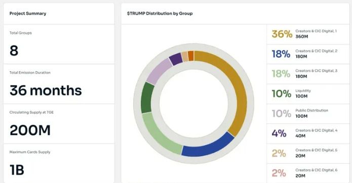 根据公开资料显示,80%的代币供应量由特朗普集团关联公司持有。其中CIC Digital公司持仓价值已超300亿美元,这种高度集中的分配模式引发市场争议。