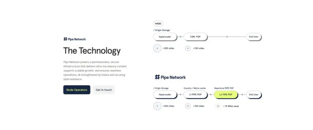 在DePIN领域快速发展的当下,Pipe Network以创新者的姿态出现,为传统中心化内容分发网络提供了全新解决方案。这个基于Solana区块链的项目通过去中心化架构,显著提升了内容传输速度,降低了延迟成本,并实现了网络规模的灵活扩展。本文将深入解析Pipe Network的核心技术、产品生态与代币经济模型。