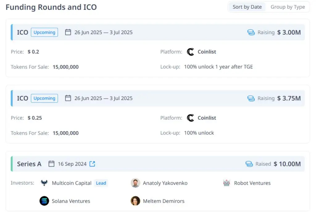 2024年完成1000万美元A轮融资,投资方包括Multicoin Capital等知名机构。代币销售计划于2025年6月在CoinList启动。