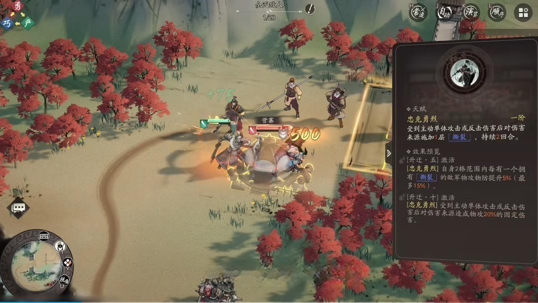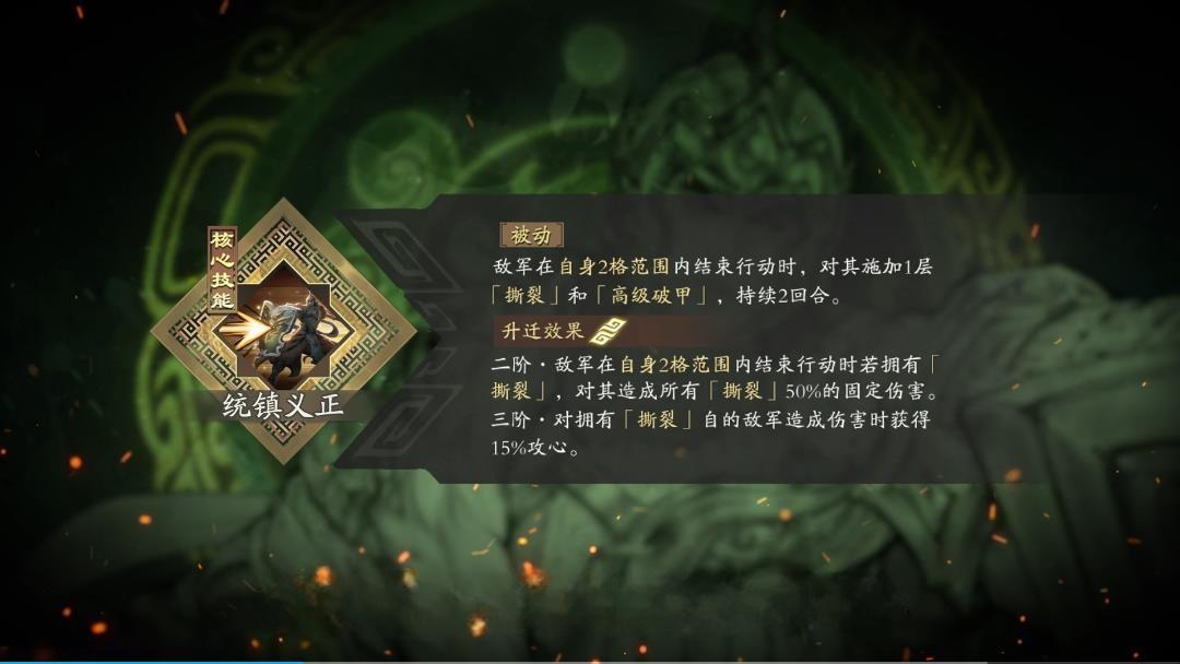 3、天赋羁绊增益显著,忠克勇烈可施加撕桨效果,范围内友军带该效果时自身物攻物防最多提升15%,册封曹洪激活血量共享羁绊。