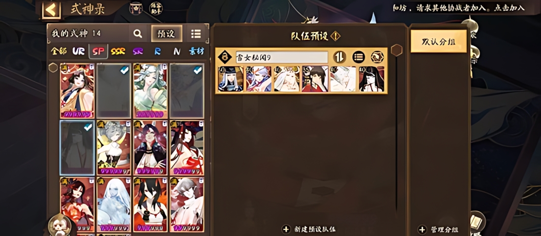 1、推荐核心配队为sp千姬天照日和坊sp空面因幡辉夜姬,sp千姬不受冰封控制,是队伍主要输出核心需重点培养。