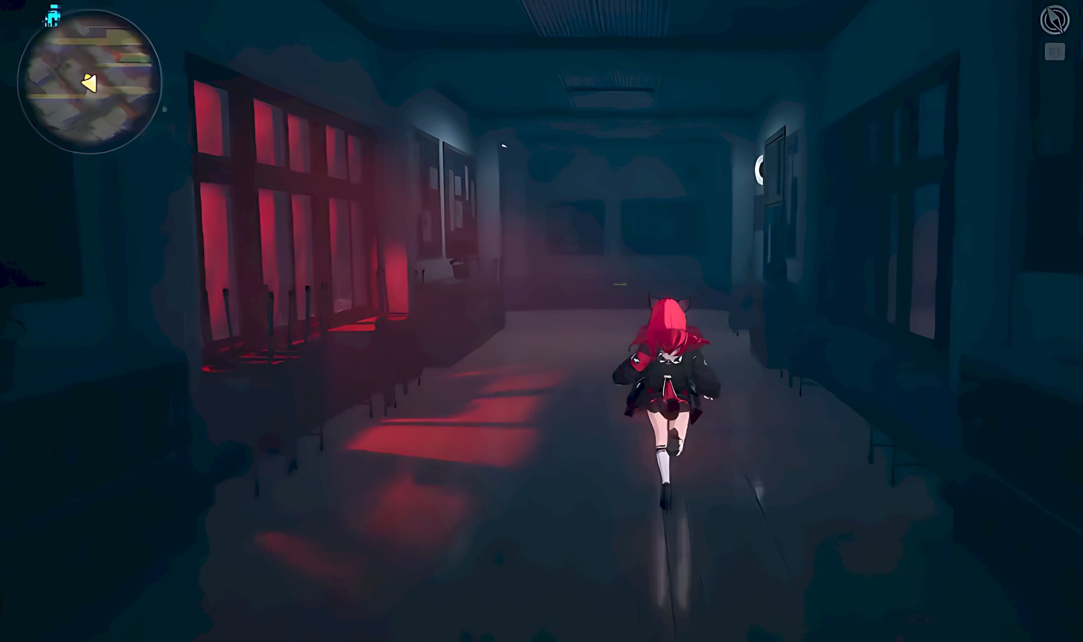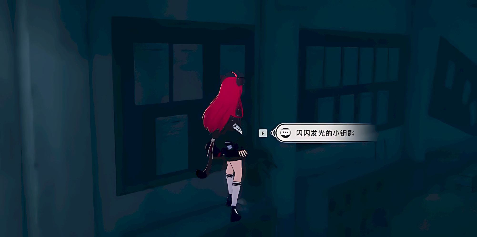 2、抵达教学建筑后先前往走廊尽头花盆,从中获取钥匙,再打开另一侧房门进入教室,过程中需留意黑影避免被追击。