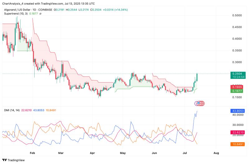 截至最新数据,ALGO币价格呈现波动上升趋势:
