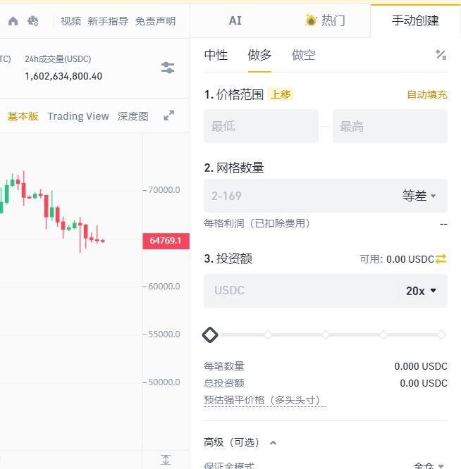 一键创建:就是直接套用币安给的推荐参数,可以帮你快速设定价格范围跟网格数量