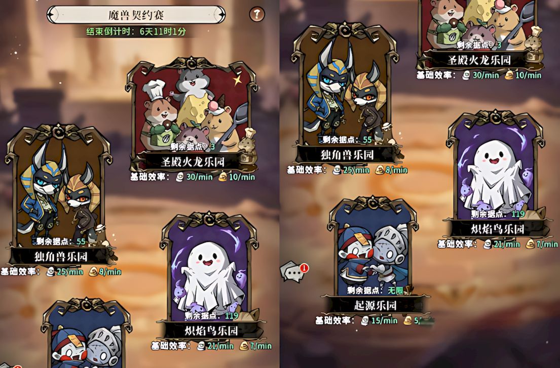 2、地图设四类据点,圣殿火龙乐园产出最优,独角兽乐园次之,炽焰鸟乐园居中起源乐园无等级限制产出最低。