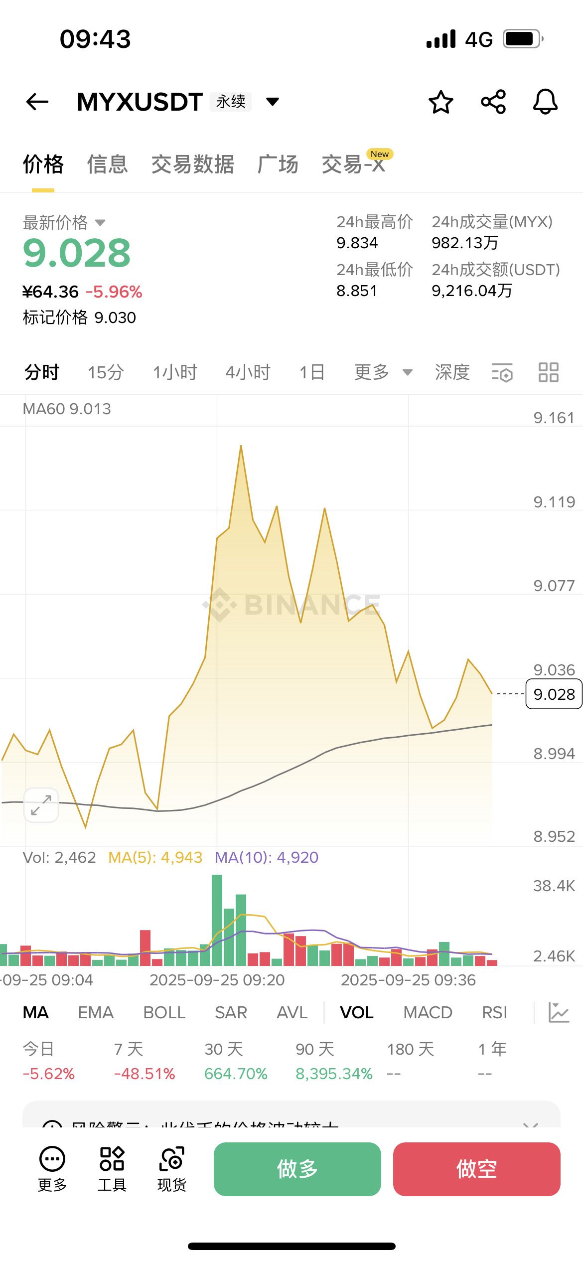 截至最新数据,MYX报价16.29美元,市值达31.8亿美元。过去两周累计涨幅1318%,但单日最大回撤达10.58%。技术指标显示RSI接近74.91,MACD形成金叉,短期仍具上行动能。
