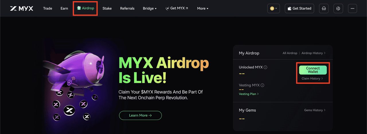 1. 访问官方页面:https://app.myx.finance/integral