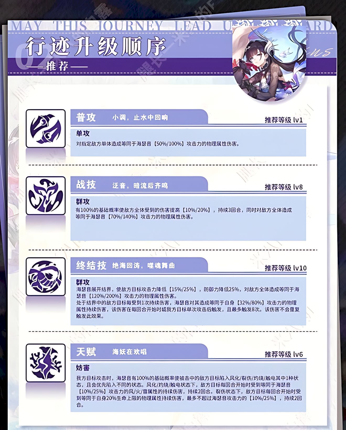 2、行迹升级以战技和终结技为核心,天赋辅助循环普攻优先级最低,满级需消耗侵略凝块等素材及大量信用点。