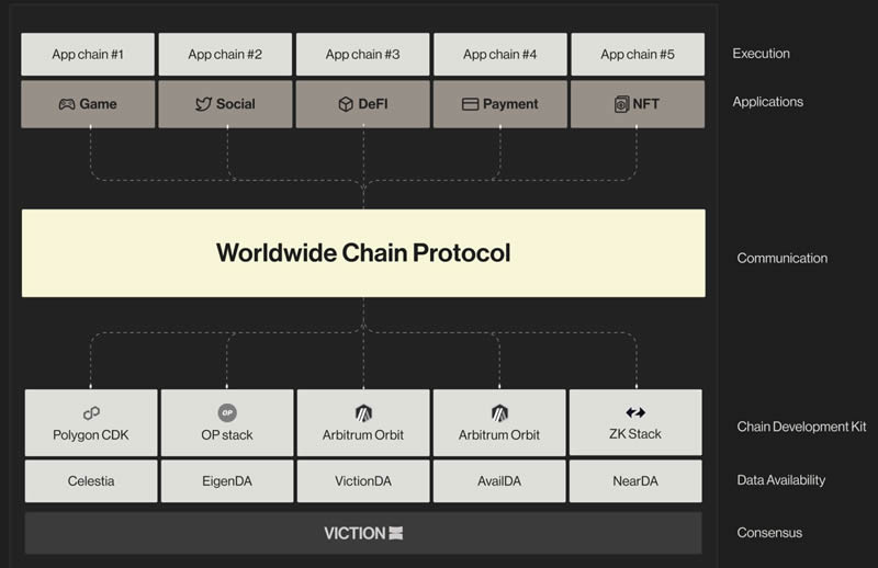 Viction采用PoSV共识机制,实现2000TPS处理能力和2秒出块时间。全球链(VWWC)通过应用链互联提升跨链互操作性,结合zkEVM技术实现高吞吐量。模块化架构允许开发者定制应用链,同时享受统一生态支持。