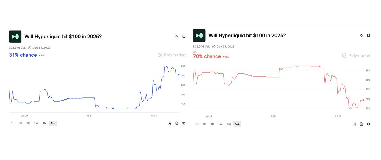 市场预测显示HYPE年内触及100美元的概率为31%。实现该目标需要生态持续扩张、代币机制良性运转与牛市环境的多重配合。