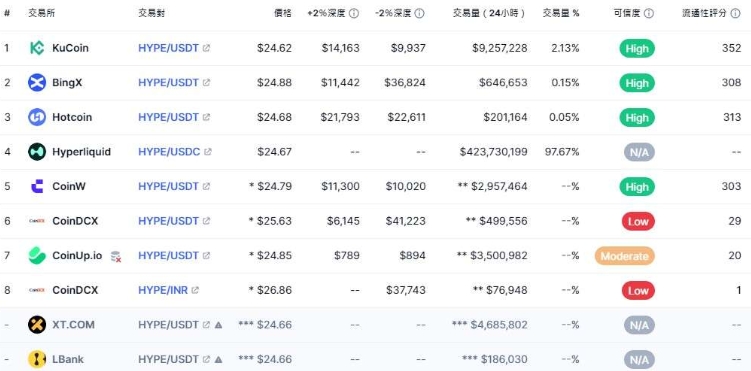 HYPE已在主流CEX和DEX上线,包括Binance、OKX等20余家交易平台,提供充足流动性支持。