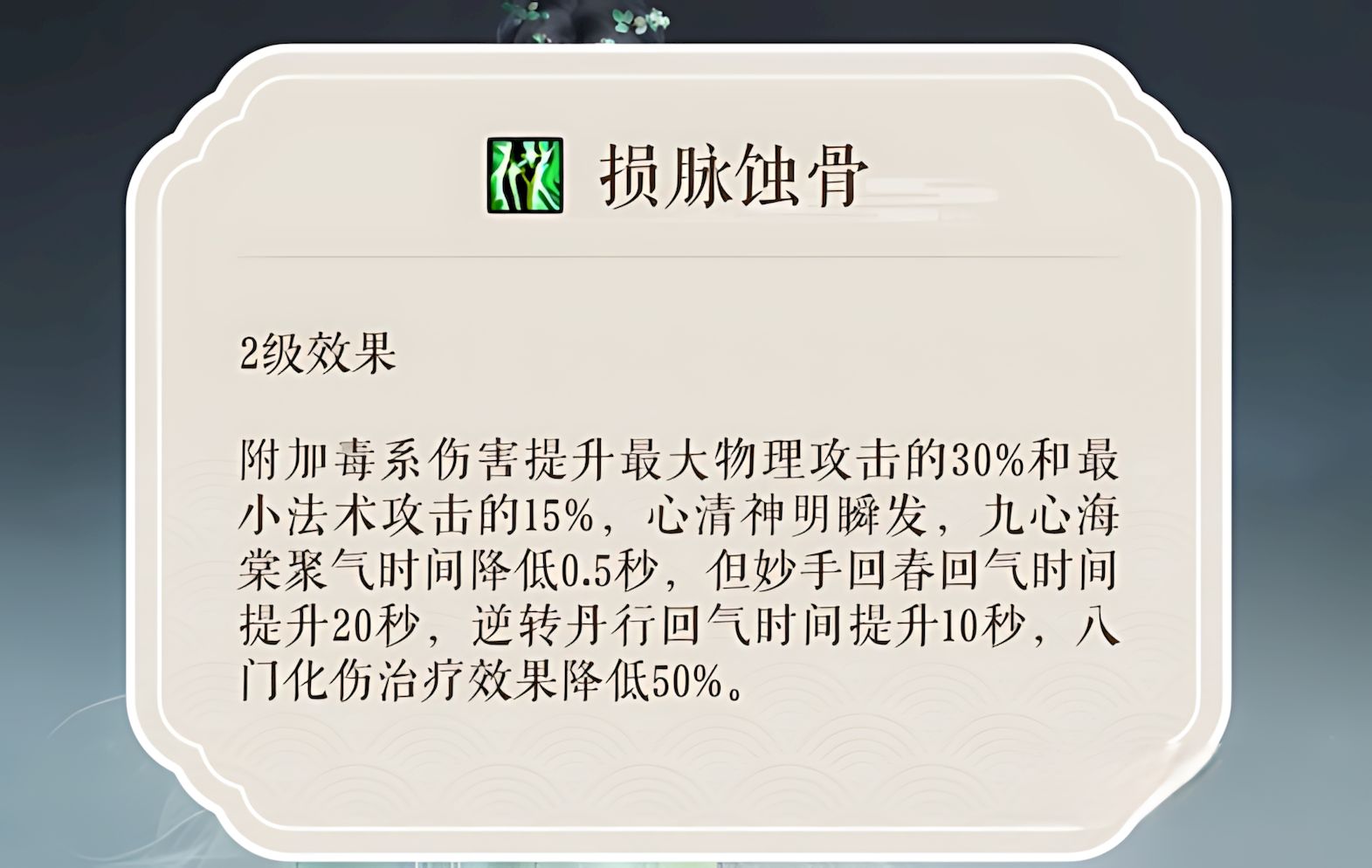 1、职业定位为高爆发强持续输出法系角色,核心机制是切断毒与奶共存逻辑,激活五毒心状态强化毒属性,同步削弱自身治疗效能。